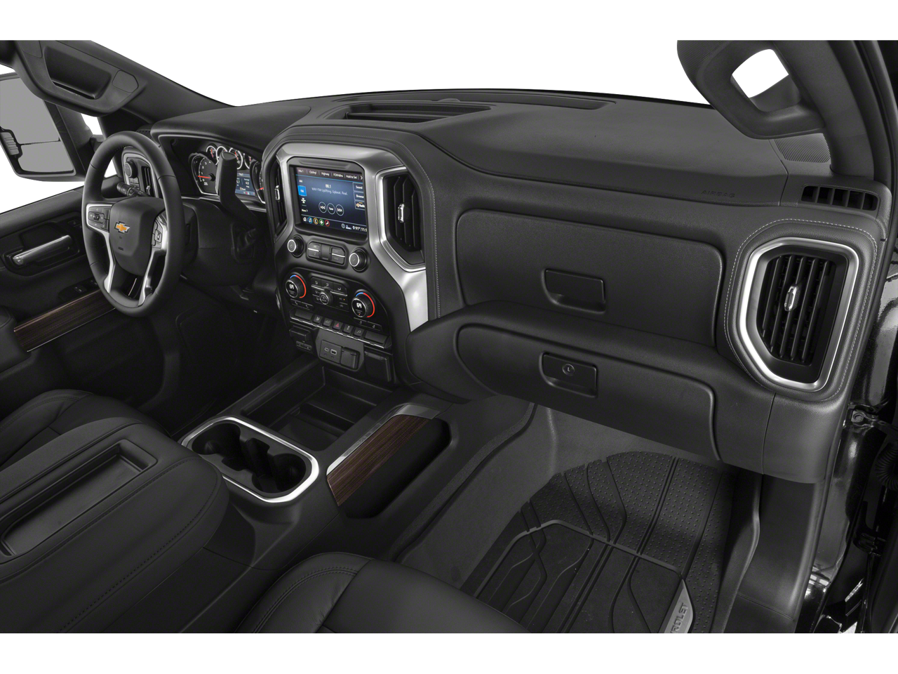 ENGINE, DURAMAX 6.6L TURBO-DIESEL V8 B20-Diesel compatible, (445 hp [332 kW] @ 2800 rpm, 910 lb-ft of torque [1220 Nm] @ 1600 rpm), CONVENIENCE PACKAGE includes (CJ2) dual-zone automatic climate control, (A2X) 10-way power driver seat including power lumbar, (KA1) heated driver and passenger seats, (KI3) heated steering wheel, (N37) manual tilt/telescoping steering column, (C49) rear-window defogger, (AVJ) Keyless Open and Start, (NP5) leather-wrapped steering wheel, (N06) steering column lock, (BTV) Remote Start, (UTJ) content theft alarm, (UF2) bed LED cargo area lighting, (T3U) LED fog lamps, (B1J) rear wheelhouse liners, (AZ3) front 40/20/40 split-bench with under-seat storage, (KPA) auxiliary power outlet and (USS) 2 charge-only USB ports for second row (Vehicles built prior to 11-15-2021 and on or after 2-21-2022 through 3-13-2022 and after 4-24-2022 include heated driver and front outboard passenger seats. DURAMAX AND APPEARANCE PACKAGE includes (Q86) 20" machined aluminum wheels with Grazen metallic painted accents, (QF9) LT275/65R20 all-terrain, blackwall tires, (VLQ) Chrome recovery hooks and (VXJ) 4" Chrome assist steps, LPO, SAFETY PACKAGE includes (UD5) Front and Rear Park Assist, (UKC) Lane Change Alert with Side Blind Zone Alert and (UFG) Rear Cross Traffic Alert Vehicles built prior to 12-20-2021 include Front and Rear Park Assist. Certain vehicles built on or after 12-20-2021, will be forced to include (00Z) Not Equipped with Front and Rear Park Assist, which removes Front and Rear Park Assist. See dealer for details or the window label for the features on a specific vehicle.), MIRRORS, OUTSIDE POWER-ADJUSTABLE VERTICAL TRAILERING WITH HEATED AND AUTO-DIMMING UPPER GLASS lower convex mirrors, turn signal indicators, puddle lamps, perimeter lighting, auxiliary lighting, power folding/manual extending (extends 3.31" [84.25mm]) Includes (DD8) auto-dimming rearview mirror. AUDIO SYSTEM, CHEVROLET INFOTAINMENT 3 SYSTEM 8" diagonal color touchscreen, AM/FM stereo. Additional features for compatible phones include: Bluetooth® audio streaming for 2 active devices, voice command pass-through to phone, wired Apple CarPlay® and Android Auto® capable. (STD), TRANSMISSION, ALLISON 10-SPEED AUTOMATIC.
